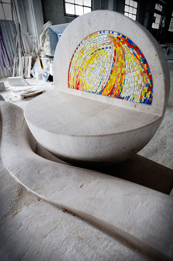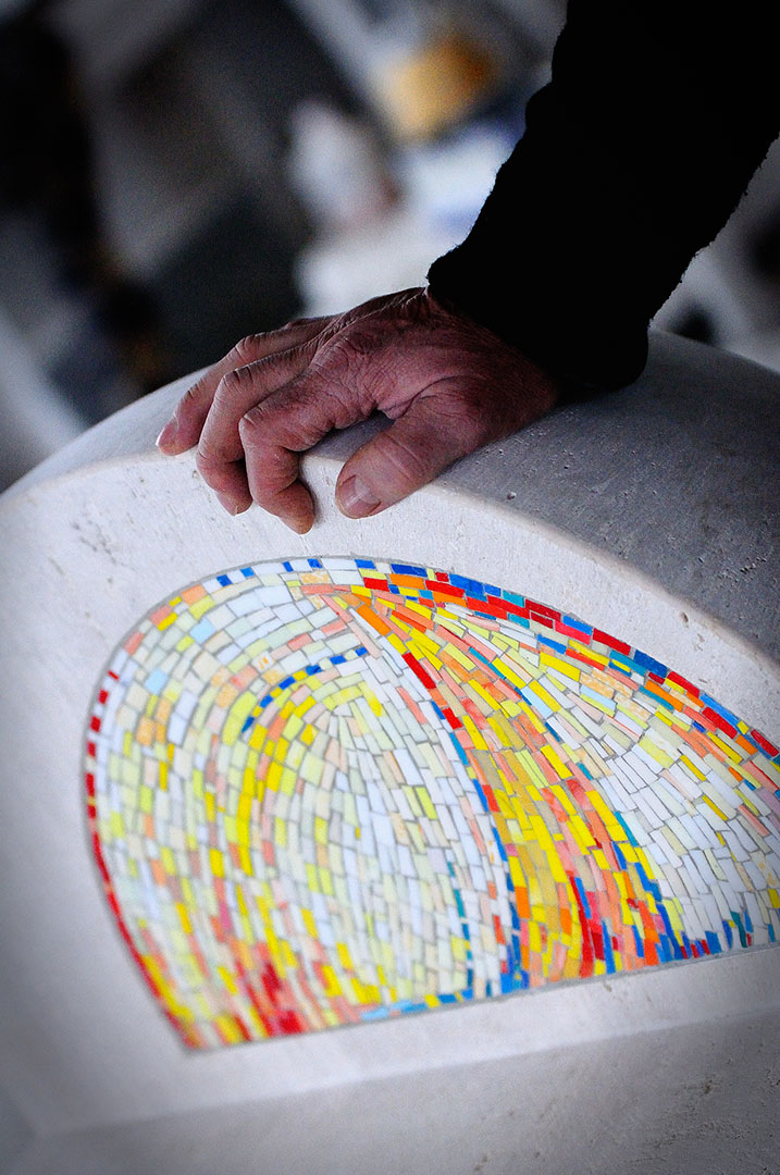 …partito da esperienze pittoriche che, negli anni settanta ed ottanta, mostravano una certa curiosità verso forme astratte che il paesaggio senese offriva al suo immaginario, è poi ad una astrazione di matrice lirica che ha ben espresso sia in pittura, sia nelle sue vetrofusioni che lo hanno reso ben noto nelle mostre all’estero. Vetrofusioni che nel corso dell’ultimo decennio ha saputo porre in dialogo in impianti scultorei-architettonici, come per esempio è stato per il monumento, posto al centro della Piazza d’Armi “ Eroi di Fiesole” della Nuova Caserma Marescialli e Brigadieri di Firenze Castello, realizzato nel 2019. Dopo questa data l’interesse si è spinto verso l’uso del bronzo, cercando sempre di far convivere la trasparente vivacità dei colori dei vetri, con la dimensione formale delle sue strutture, ora affidate alla fusione del metallo…